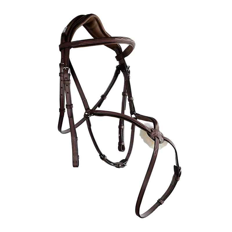 A raised figure 8 noseband bridle with an artificial sheepskin protection. Benefits: