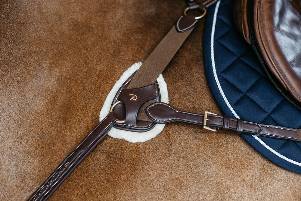 The Vegan Sheepskin Protection Pad for 5 Points Breastplate is an attachable protective pad that has an optimal placement on your horse.