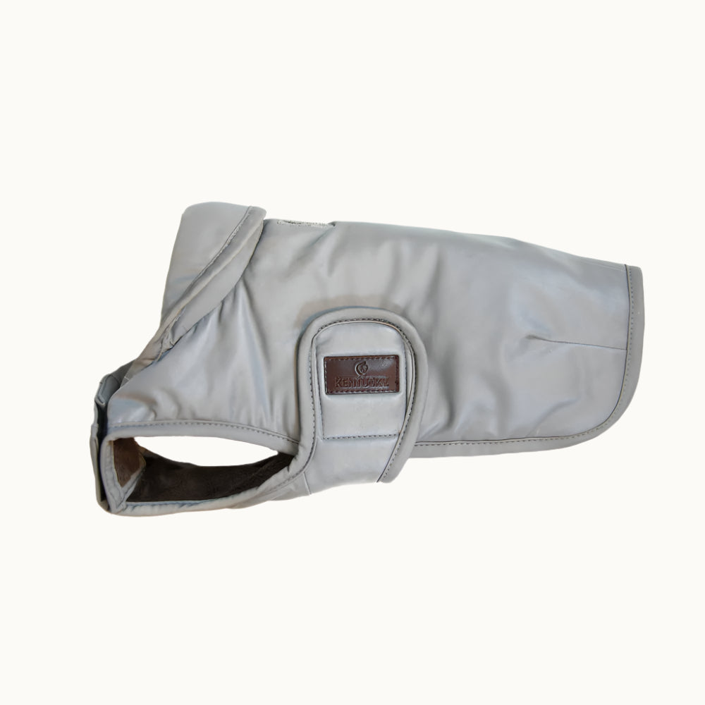 The outside of the dog coat has a reflective layer to warn all passengers your dog is on the road. This layer is coated to make it waterrepellent, which will keep your dog dry on rainy days. The dog coat as well as the belly cover are filled with 150g fiberfill to keep your dog warm on cold days. The inside of the dog coat is lined with artificial rabbit skin, this makes sure the coat stays in place on your dog. The rabbit skin is also very soft and works as an isolation layer to maintain your dog?s body heath.