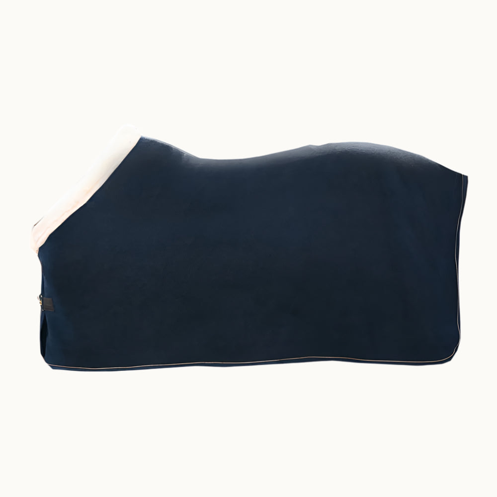This rug mimics the elegant appearance of traditional wool while eliminating its typical drawbacks. This Fleece Rug is crafted from 100% polyester which offers durability and ease of care. Perfect for post-training or bathing in cooler climates, this rug ensures your horse remains warm and dry, preventing any discomfort from chilling.