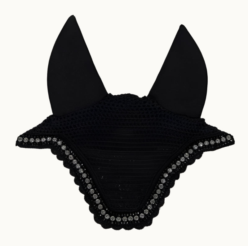 Next to our popular stone and pearl fly veil, we now have one that stands out even more. Meet our fly veil wellington big stone and pearl. Thanks to the soundless ears, loud noises will be reduced for your horse, making him more focused.