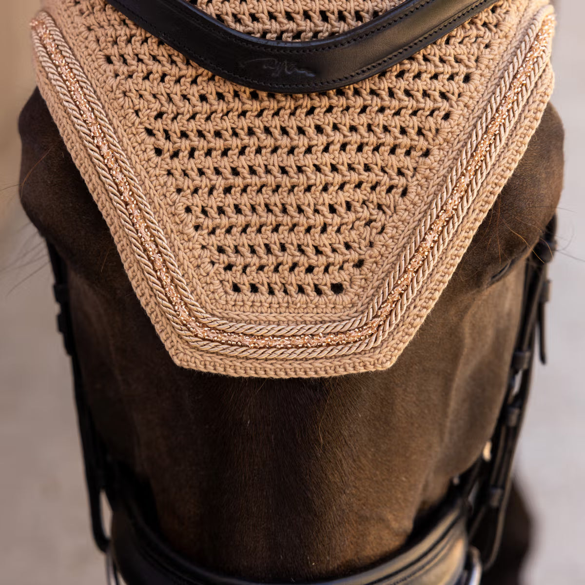 This fly veil offers refined protection for your horse while adding an elegant finishing touch to any look.