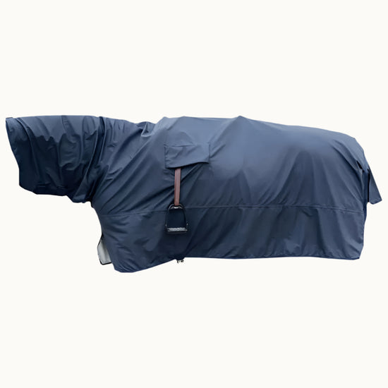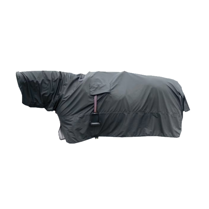 The Horse Raincoat Hurricane is a must have for every competition rider to protect his horse and his expensive tack against heavy rain. It is compact, lightweight and 100% waterproof. It is easy to put over another rug or saddle while walking the horse on rainy days.