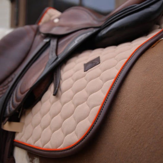 The Onion Quilt Saddle Pad blends classic elegance with modern innovation. The unique Neon cord piping offers a bold and eye-catching look . Its anatomical shape and shock-absorbing features offer unbeatable comfort, and the absence of saddle straps simplifies both saddling and unsaddling.
