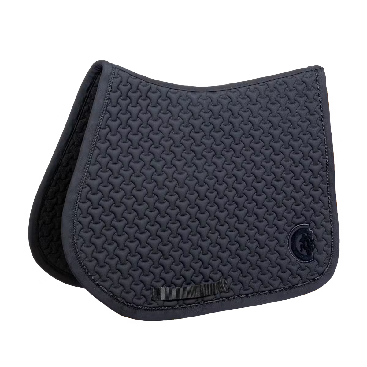 The Saddle Pad Plaited 3D Logo provides excellent cushioning between the horse’s back and the saddle while protecting from friction. The 3D logo on each side placed at the bottom of the saddle pad leaves the possibility to embroider your own logo if desired. This saddle pad is available in several colors that you can combine with our fly veils for a total stylish Kentucky look.