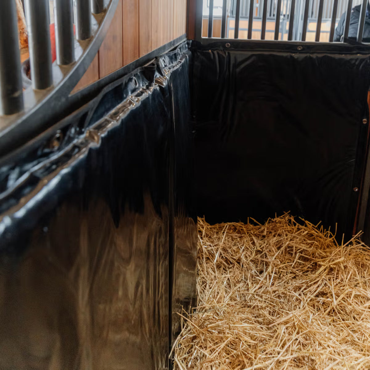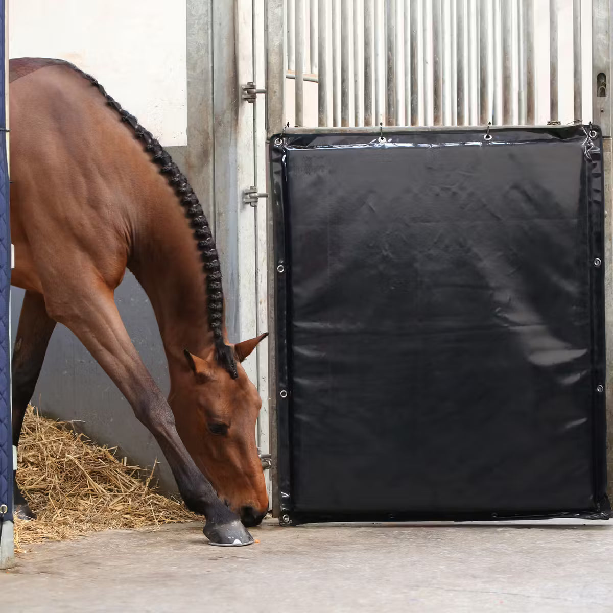At Kentucky Horsewear we strive for perfect protection for your horse. Therefore, we developed our new Kick Pad! Many owners, riders and grooms use heavy, expensive rubber pads to prevent the horse from sustaining injuries while kicking in the stall or during transportation. We searched for an affordable and easy-to-use alternative and so we developed our new Kick Pad. Our Kick Pad can be used in different places, like the stall, van or truck. By making use of the reinforced rings you can attach it wherever you like. A lot of horses that kick in their stalls go on international shows. Our lightweight Kick Pad is easy to take with you and offers your horse the protection it needs, wherever he/she goes.