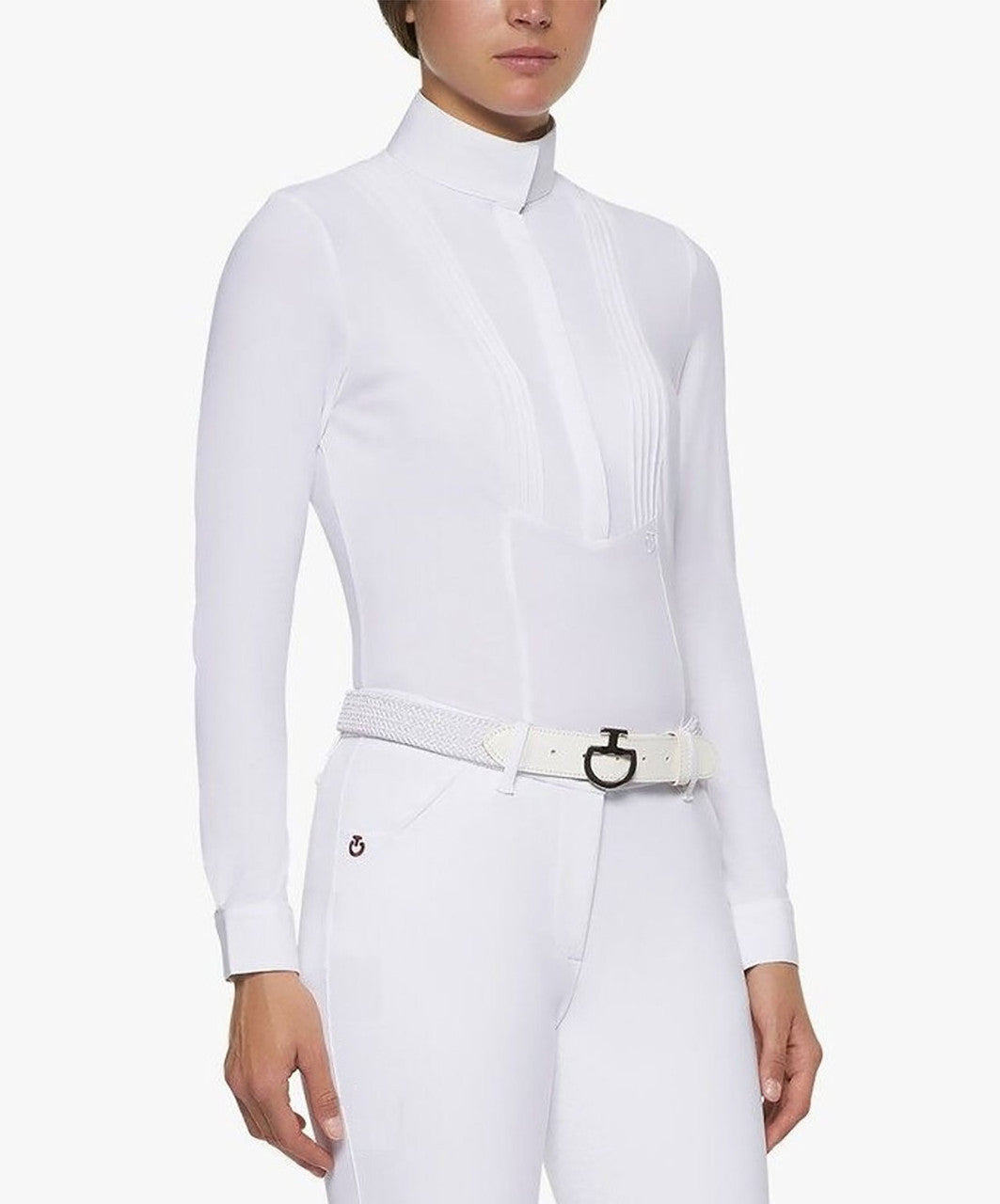 The Cavalleria Toscana Ladies American Show Shirt features elegant bib detailing and sleek, clean lines. The breathable, high performance fabrics ensure that you stay comfortable and cool all day long. The CT American ladies show shirt is the perfect shirt for a polished and professional show ring appearance!