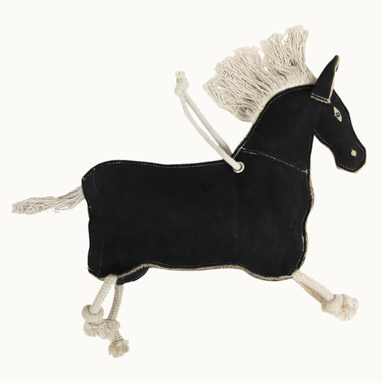 A small rope is attached to the withers of the Kentucky Relax Horse Toy so it can be attached in the stable.