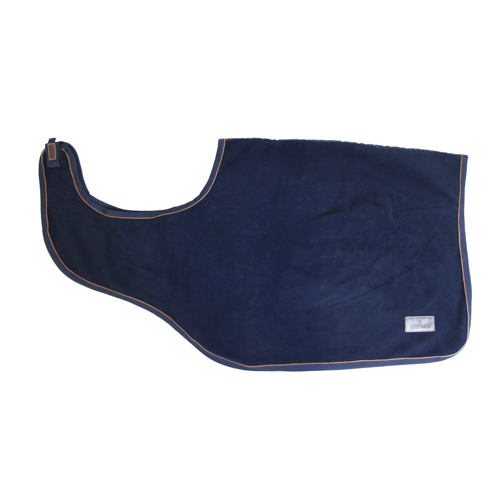The Riding Rug Heavy Fleece is made in the same fabric that our popular Fleece Rug Heavy. It gives it the same look and hand feel than a wool rug, without the inconveniences this fabric can bring. While warming up, the Riding Rug Heavy Fleece will keep your horse warm. When cooling down, it will let sweat evaporate, allowing your horse to dry quickly. This Riding Rug Heavy Fleece features a strong Velcro fastening to attach in front of the saddle, as well as a tail cord. The Kentucky logo in brown artificial leather give it a very fancy look. The rug is machine washable at 30ø, no dryer.