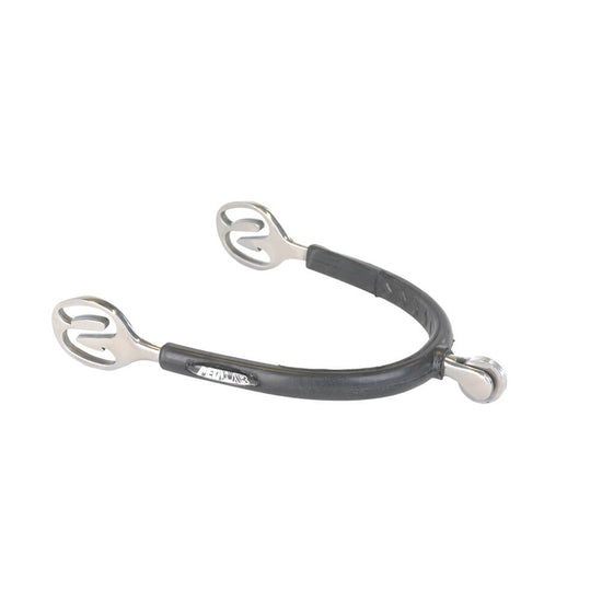 Made with premium ASTM304 stainless steel, these METALAB spurs with a 3mm wheel ensure long-lasting durability and feature a high-quality anti-slip rubber cover for a secure fit and superior grip. The innovative pioneer S-eyelet provides secure and steady fastening of spur straps. Compliant with the 2024 FEI rules, they are approved for competition use. Sold per pair.