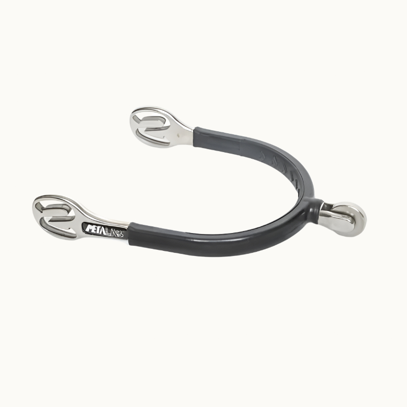 Made with premium stainless steel, these METALAB spurs with a Soft Touch horizontal wheel ensure long-lasting durability and feature a high-quality anti-slip rubber cover for a secure fit and superior grip. The innovative pioneer S-eyelet provides secure and steady fastening of spur straps. Compliant with the 2024 FEI rules, they are approved for competition use. Sold per pair.