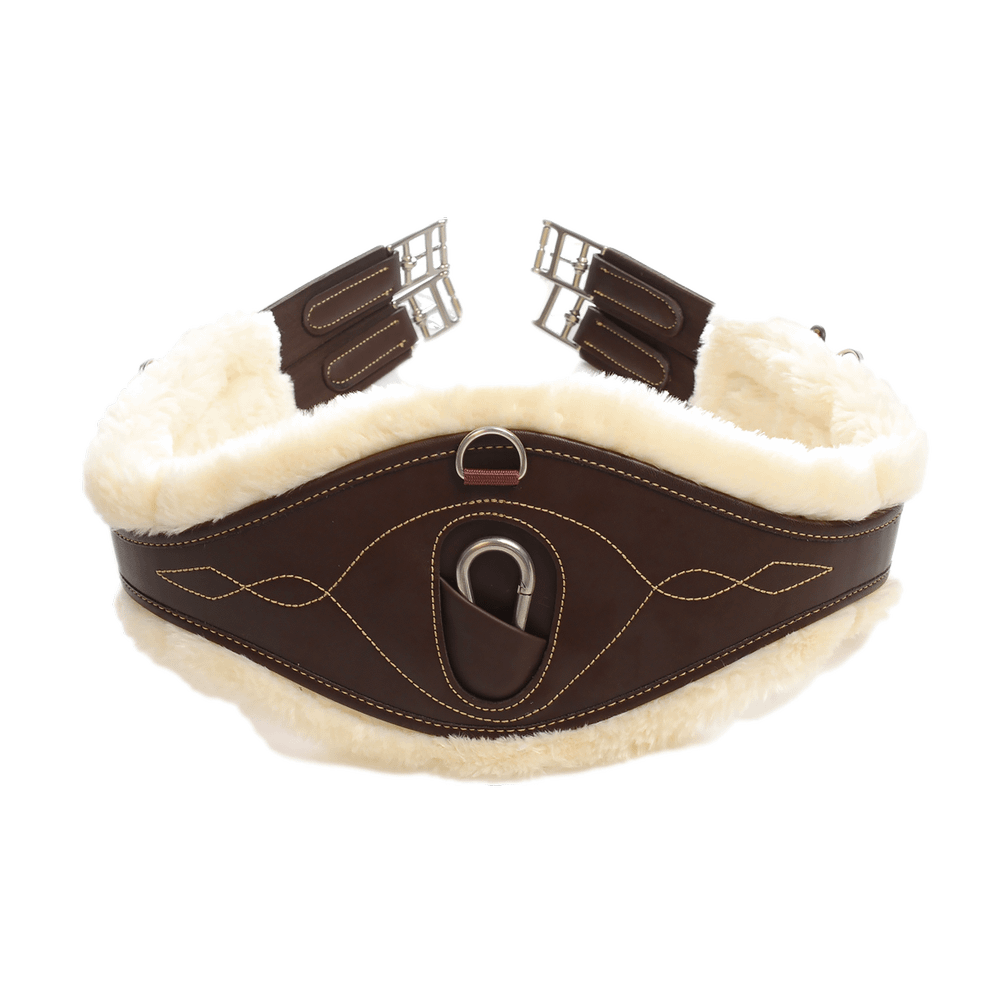 It features elastics on both ends to equalize pressure as well as three D-rings to accommodate schooling equipment and a buckle to attach the breastplate to the girth. The elastics are very strong and stay firm as they are three double made. The Sheepskin Anatomic Girth features an EVA protective inner. The girth is made out of artificial leather, making it 100% animal-friendly and easy to maintain. The artificial leather doesn?t take in any dirt, sweat, or water and is therefore very durable! It does not change color and doesn?t get damaged easily.