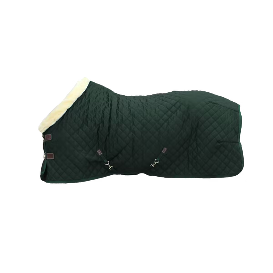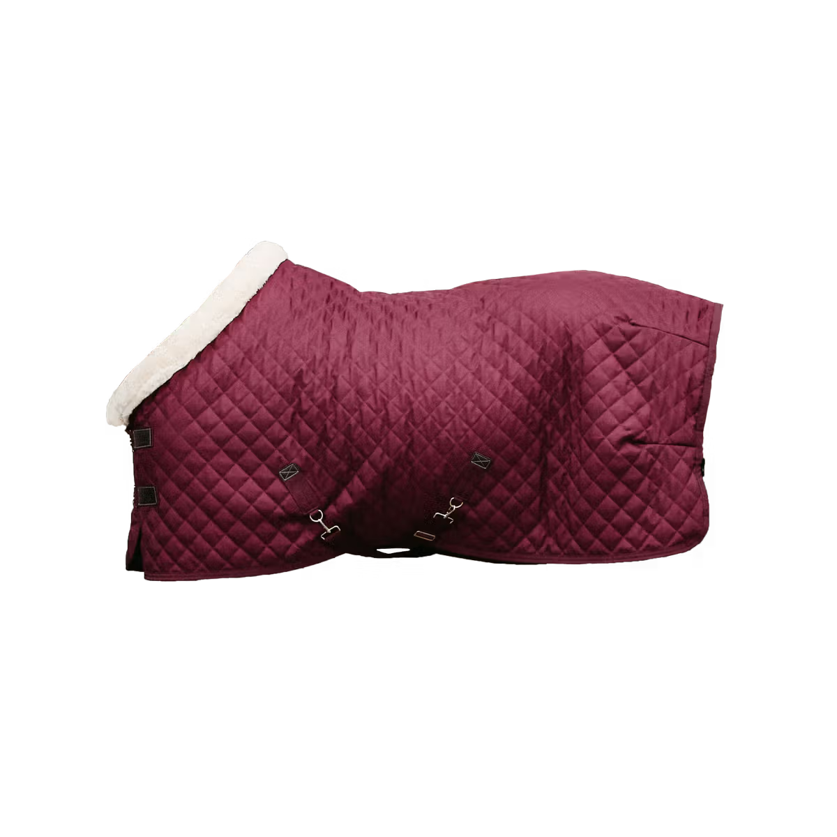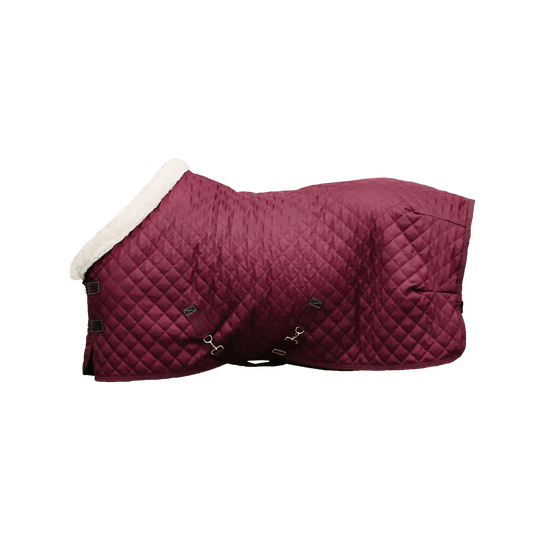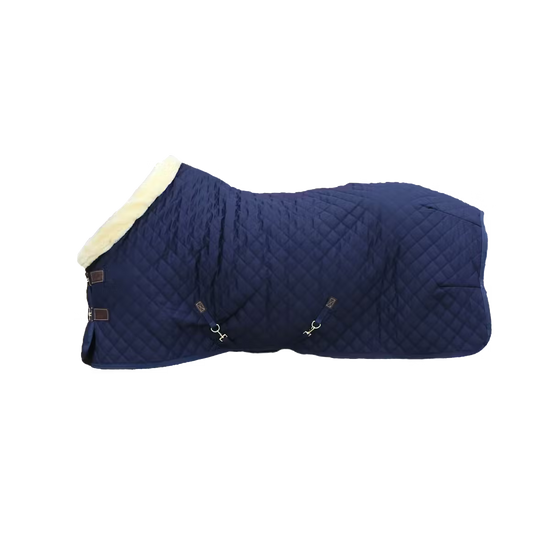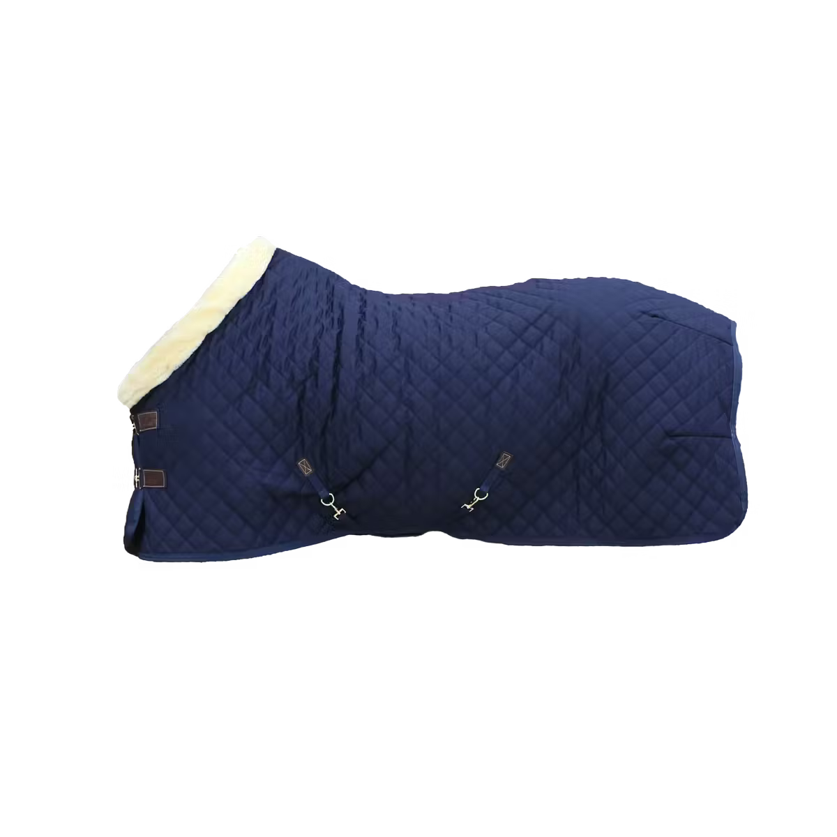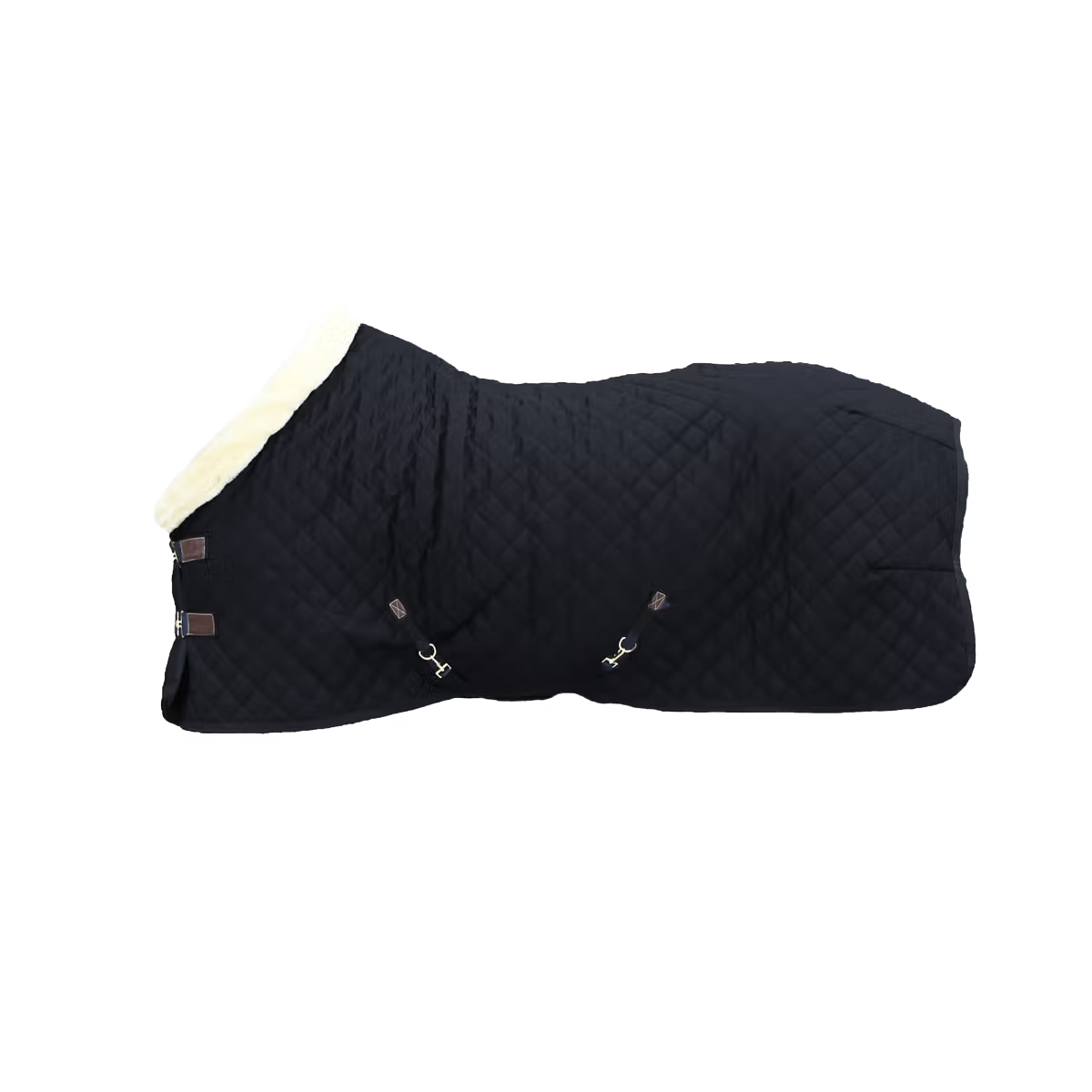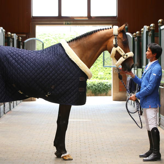 The Show Rug is made from 600D high tenacity polyester with a classy yet timeless diamond quilting. This makes it incredibly hard to tear the rug and avoids that shavings stick to the rug. To prevent pressure on the shoulder and wither area, the collar of the Show Rug is made from our popular artificial sheepskin. Next to a fancy look, the artificial sheepskin is also much more comfortable. For example, when the horse is eating the rug will not cut into the chest. The rug has a 160g fiberfill filling, which has the same performance as down but does not absorb any smell. To avoid rubbing marks, the rug is lined with our signature artificial rabbit skin. This fabric is extremely soft and creates a shiny effect on the horse’s coat. On top of that, the artificial rabbit skin creates tiny pockets of air. These pockets trap and retain the horse’s body heath causing an extra isolating layer. The combination of the materials creates a very breathable rug with a high warmth-to-weight ratio.