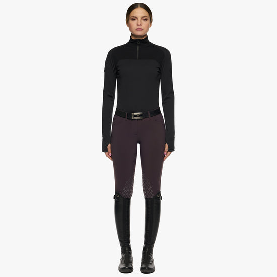 This practical garment is perfect when riding or even as a base layer worn on cold days. The slim cut of the high-neck garment moves with the body, and is in performance jersey that helps keep warmth in thanks to the yoke in soft wool fabric. The long sleeves with thumb holes on the cuffs protect from the cold, while the CT logo puller is an aesthetically refined accent.