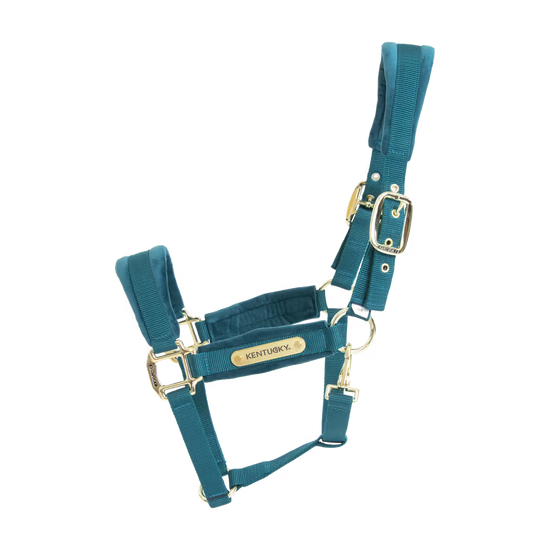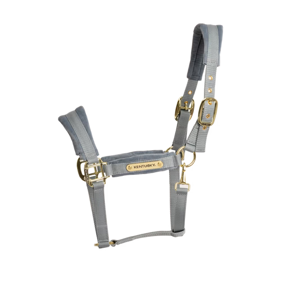 For all the fans of our velvet equipment, we now have a halter with velvet fabric. The nameplate on the halter can be turned over and personalized with your horse?s name, for example.