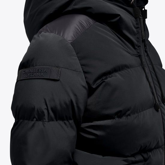 Express your elegance even on the coldest days with this down jacket. The hood and waistband combine functionality and style, while the length offers full coverage. The Cavalleria Toscana logo accentuates the sophistication of the design.