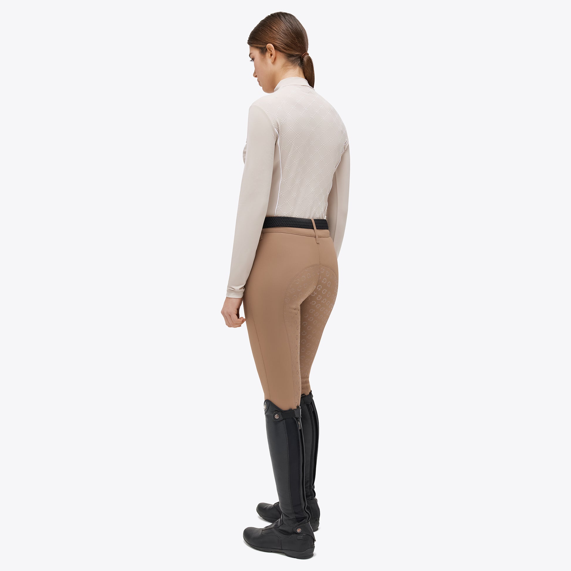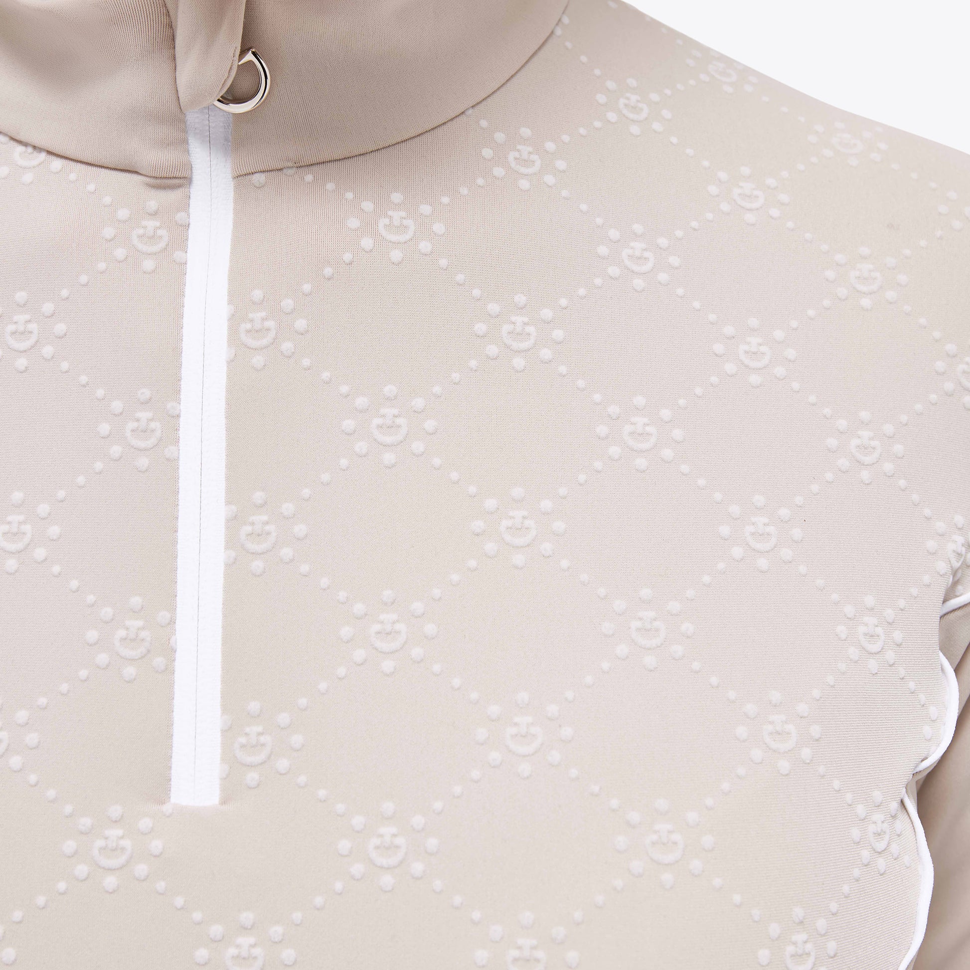 Women's fleece jersey training polo shirt, zipper, CT print and long sleeves