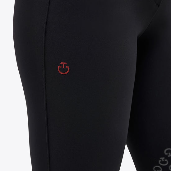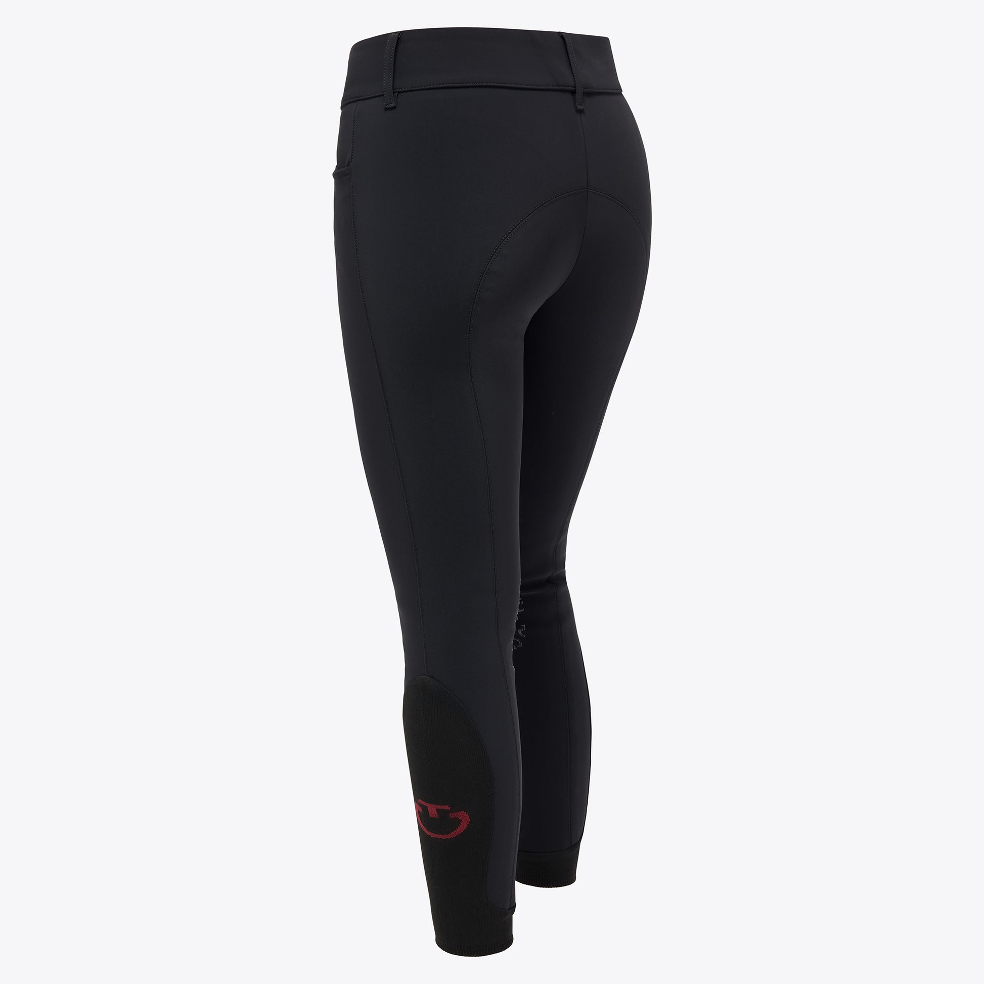 The 4-way stretch technical jersey used for this riding breeches Cavalleria Toscana provides maximum breathability and freedom of movements: this fabric adheres perfectly to your body, without constriction. The high-waisted band comes with an internal grip, wich provides the right fit over your shirt. It also features wide belt loops to accomodate your riding belt. The transparent knee grip allows the right stability, while the stretch-knit socks fit comfortably under your boots. The easy care material provides antibacterial properties and UV protection