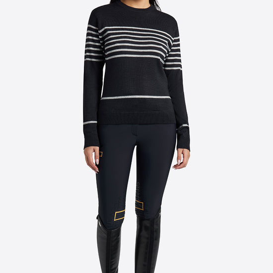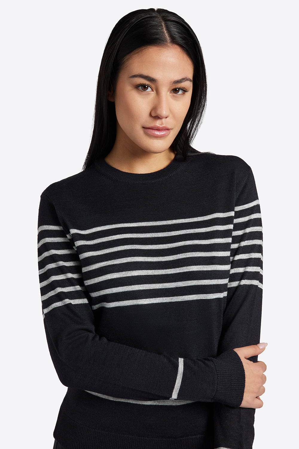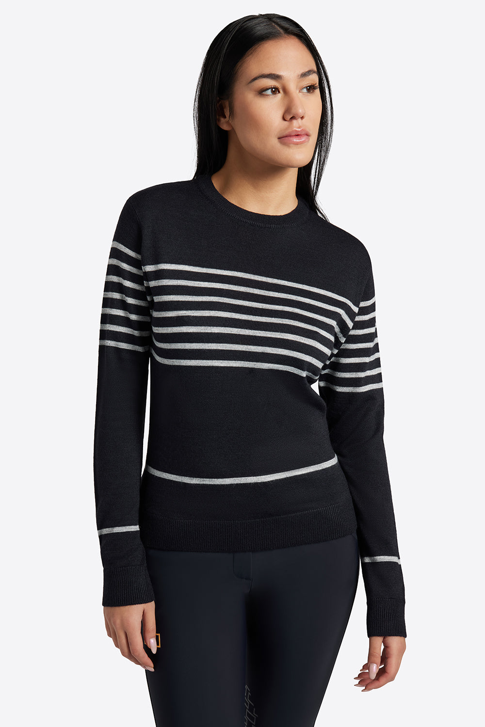 Rider's Gene Women's Wool Blend Crew Neck Sweater with Striped Design and Elegant Comfort